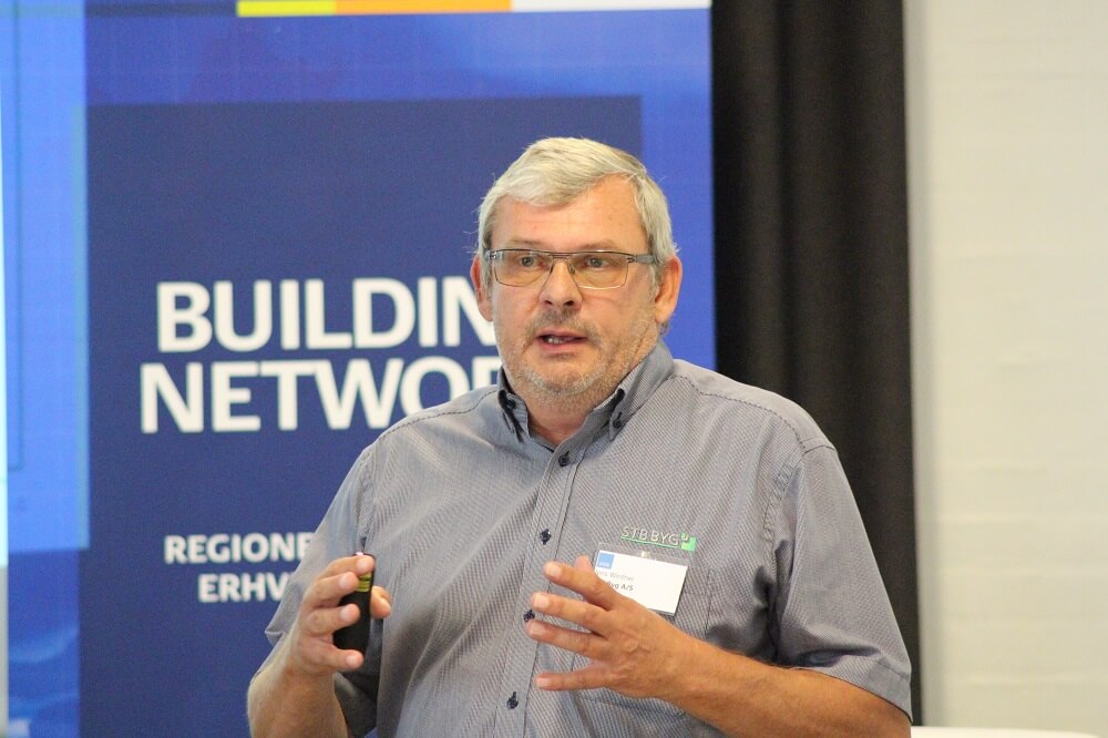 Medejer i STB Byg A/S, Jens Winther, afsluttede oplægsrunden med en præsentation af STB Byg og en gennemgang af virksomhedens aktuelle og kommende bygge- og anlægsprojekter.