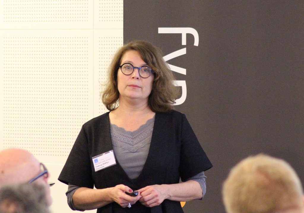 Maj-Britt Helle Jensen, leder af By- og Egnsstrategisk Sekretariat Faaborg-Midtfyn Kommune fortsatte efter pausen med et oplæg om Fremtidens Forstad og byudvikling i Årslev-Sdr. Nærå. Maj-Britt Helle Jensen har arbejdet med byudvikling i 30 år og har til opgave at realisere kommunens byudviklingsprojekter.