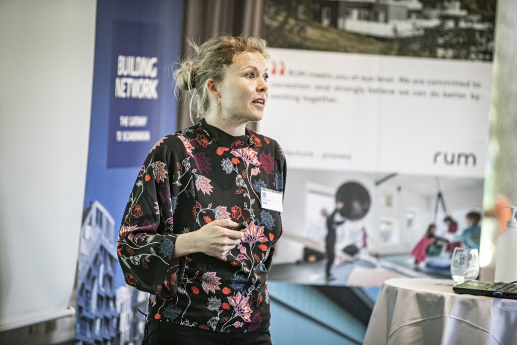Projektchef i arkitektvirksomheden RUM, Mia Scheel, kom i sit oplæg med eksempler på, hvordan RUM har succes med at udvikle nye bydele, boligformer og byggerier, hvor man ved hjælp af nytænkende arkitektur og design sætter sikkerhed, sundhed og nye fællesskaber i centrum.