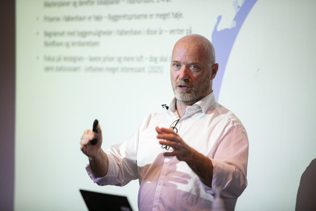 Byggeudviklingschef i det almene boligselskab KAB, Ulrik Steen Jensen, fortalte, hvorfor og hvordan KAB arbejder målrettet på at udvikle et nyt boligkoncept, hvor man anvender træ og genbruger bæredygtige byggematerialer som erstatning for klimabelastende materialer som blandt andet beton.