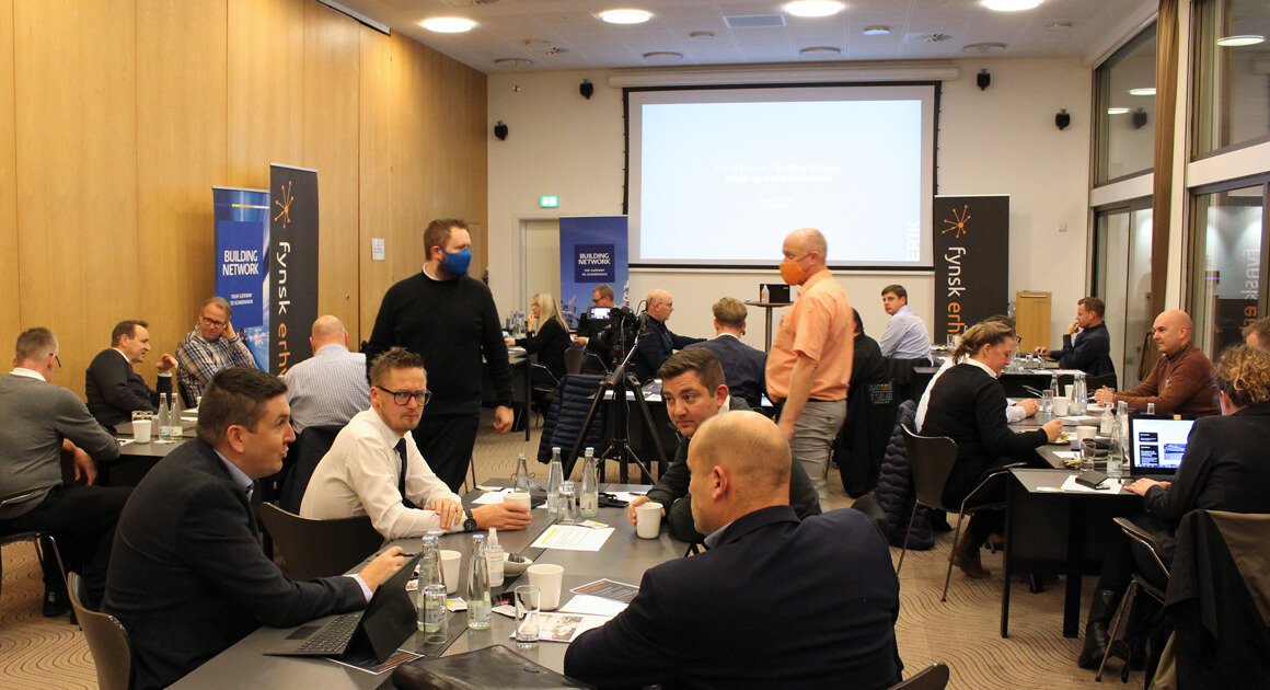 Direktør i Building Network, Mickey Lund, og direktør Jytte Reinholdt fra Fynsk Erhverv bød velkommen til et flot fremmøde af deltagere og oplægsholdere. På grund af nye COVID-19 restriktioner var det muligt at deltage virtuelt i bygge- og anlægskonferencen, hvilket en række deltagere benyttede sig af. Direktørerne fra de to netværk kunne også med glæde annoncere, at Building Network og Fynsk Erhverv har 5 års jubilæum i samarbejdet om at invitere deres medlemmer til den årlige konference på Fyn.