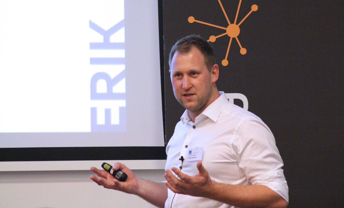 Tegnestueleder Jonas Petersen fra ERIK Arkitekter, der i 2020 har åbnet en afdeling i Odense, fortalte om en række aktuelle projekter, som er i pipelinen. Arkitektvirksomheden er blandt andet totalrådgiver på renoveringen af 587 almene boliger i Odense. Jonas Petersen gennemgik også, hvordan man hos ERIK arbejder målrettet med innovation, bæredygtighed og digitalisering af byggeteknik.
